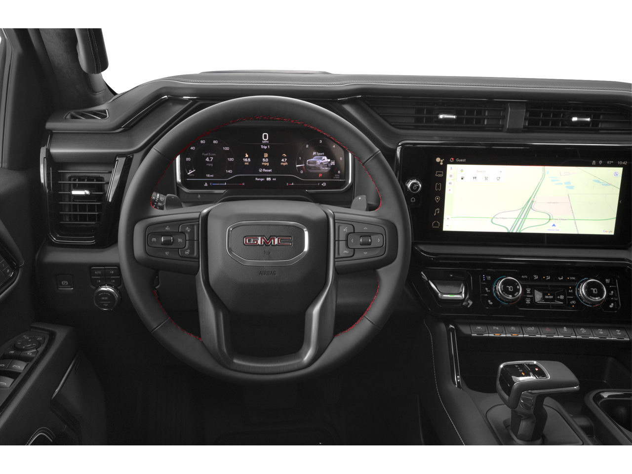 Preferred Equipment Group 4SG (120-Volt Bed Mounted Power Outlet, 120-Volt Interior Power Outlet, 2 Charge/Data USB Ports Inside Center Console, 2 Type-C Charge-Only Rear USB Ports, 2 USB Ports, Bed View Camera, Bose Premium Series w/12-Speaker System, Color-Keyed Carpeting Floor Covering, Deep-Tinted Glass, Driver-Selectable Full-Locking Front Differential, Driver-Selectable Full-Locking Rear Differential, Electric Rear-Window Defogger, Floor-Mounted Center Console, Front Prem Floor Liners w/Removable Carpet Insert, Front Rain-Sensing Wipers, Gloss Black Header w/Drk Nickel Grille Insert Bars, HD Surround Vision, Heated 2nd Row Outboard Seats, Heated Driver & Front Outboard Passenger Seating, Heavy-Duty Air Filter, Hill Descent Control, Hitch View, In-Vehicle Trailering System App, Integrated Trailer Brake Controller, Keyless Open & Start, LED Cargo Area Lighting, Multicolor 15 Diagonal Head-Up Display, MultiPro Tailgate Audio System by Kicker (LPO), OnStar Services Capable, Perimeter Lighting, Power Door Locks, Power Front Passenger Windows w/Express Up/Down, Power Front Windows w/Driver Express Up/Down, Power Rake & Telescoping Steering Column, Power Rear Windows w/Express Down, Power Sliding Rear Window w/Rear Defogger, Power Sunroof, Push Button Start, Rear Cross Traffic Braking, Rear Pedestrian Detection, Rear Prem Floor Liners w/Removable Carpet Insert, Rear Wheelhouse Liners, Remote Vehicle Starter System, SiriusXM w/360L Trial Subscription, Spray-On Pickup Bedliner w/GMC Logo, Steering Wheel Audio Controls, Theft Deterrent System (Unauthorized Entry), Trailer Camera Provisions, Trailer Side Blind Zone Alert, Trailer Tire Pressure Monitor System, Ultrasonic Front & Rear Park Assist, Universal Home Remote, Ventilated Driver & Front Passenger Seats, Wi-Fi Hotspot Capable, and Wireless Charging), Trailering Package (Hitch Guidance), 10-Speed Automatic, 4WD, Obsidian Rush Leather, 12 Speakers, 16-Way Power Driver Seat Adjuster w/Lumbar, 16-Way Power Passenger Seat Adjuster w/Lumbar, 170 Amp Alternator, 220 Amp Alternator, 3.23 Rear Axle Ratio, 4-Wheel Disc Brakes, ABS brakes, Air Conditioning, Alloy wheels, AM/FM radio: SiriusXM with 360L, Apple CarPlay/Android Auto, Auto High-beam Headlights, Auto-dimming door mirrors, Auto-dimming Rear-View mirror, Automatic Emergency Braking, Automatic temperature control, Auxiliary External Transmission Oil Cooler, Block heater, Brake assist, Buckle to Drive, Compass, Delay-off headlights, Driver door bin, Driver Memory, Driver vanity mirror, Dual Active Exhaust, Dual front impact airbags, Dual front side impact airbags, Electronic Stability Control, Emergency communication system: OnStar, External Engine Oil Cooling, Following Distance Indicator, Forward Collision Alert, Front anti-roll bar, Front Bucket Seats, Front Center Armrest, Front dual zone A/C, Front fog lights, Front License Plate Kit, Front Pedestrian Braking, Front reading lights, Front wheel independent suspension, Full Grain Leather Seat Trim, Fully automatic headlights, Garage door transmitte